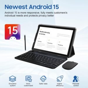 Denne tablet kører på det nyeste Android 15 OS og giver adgang til et stort økosystem af apps og tjenester, som holder dig forbundet og underholdt.