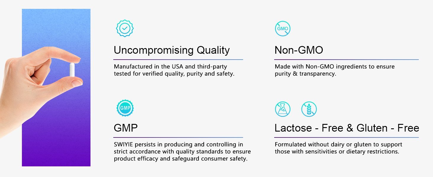 Marca Confiable: SWIYIE: sin OMG, gluten ni aditivos artificiales.